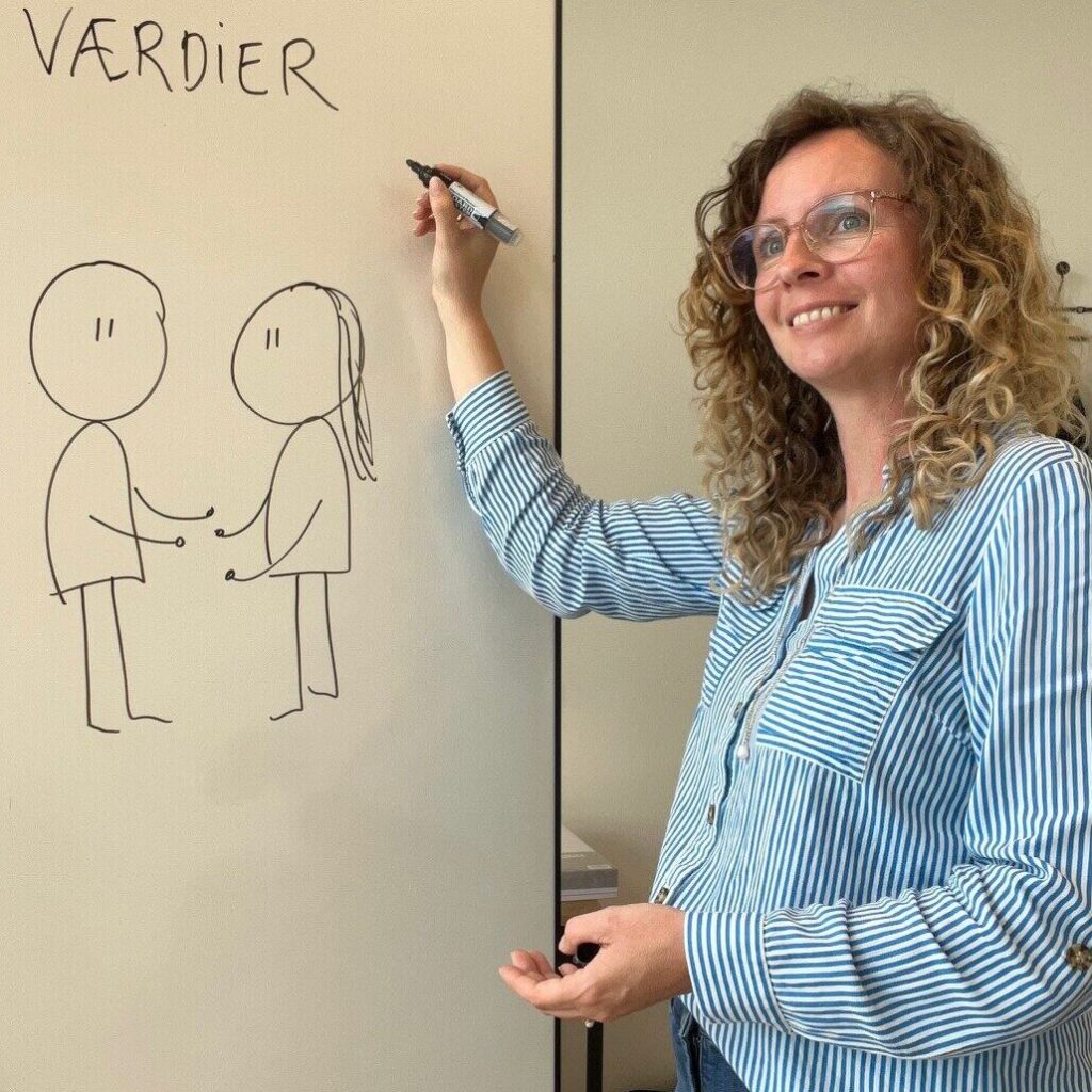 ”At være i forløb hos dig, er trygt og rart. Dine små tegninger formår at gøre alt det der virker så stort og svært, til noget helt simpelt og overskueligt. Selv om det har været svært at beskrive de tanker og frustrationer der har fyldt meget, så er det som om, at du med et trylleslag får stillet de rette spørgsmål og griber lige netop de ord der beskriver det bedst. Vi kunne ikke være nået hertil uden din hjælp, og vi er helt trygge ved at vide at du er lige der, hvis vi igen får brug for et trygt sted at søge vejledning”